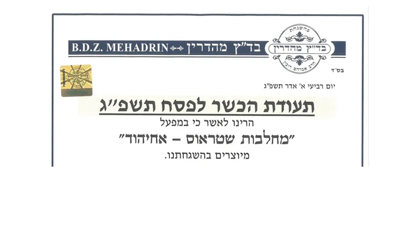 מגוון מוצרי שטראוס בכשרות מהדרין לפסח