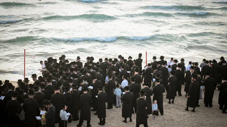 גלריה: חסידי קרעטשניף בראשות האדמו"ר באמירת תשליך בחוף אשדוד