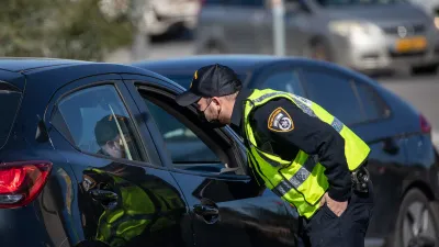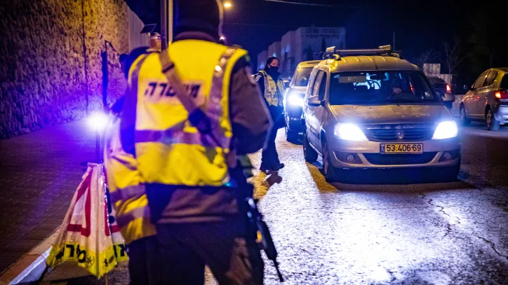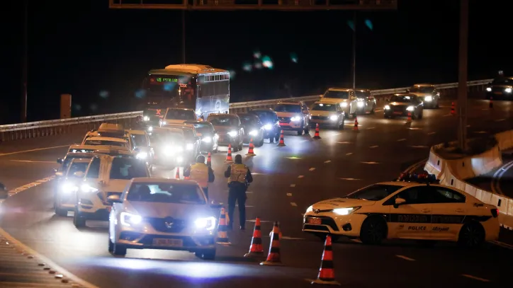 עם כניסת הסגר בשעה 17:00 המשטרה נערכה עם כוח של 4 אלף שוטרים והציבה מחסומים בנקודות אסטרטגיות ברחבי הארץ בכדי לבדוק אם שמירת הסגר | על פי התקנות, אסור לצאת ממרחק של 1000 מטר מהבית שלא לצורך חיוני או עבודה שהותרה בחוק. המשטרה הבהירה כי בתחילה ימנעו מדוחו"ת והשוטרים יעסקו בהסברה | צילום: אולייביה פיטוסי פלאש 90