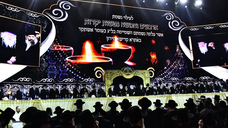 בדיוק אחד עשר חודשים לאחר אסון מירון נערך בהיכל הארנה בירושלים אירוע ענק לזכר ההרוגים בהשתתפות גדולי הדור וקהל רב | אלפי אברכי ובחורי חסידות גור סיימו את הש"ס לזכרם של הנספים באסון הקשה | גלריה