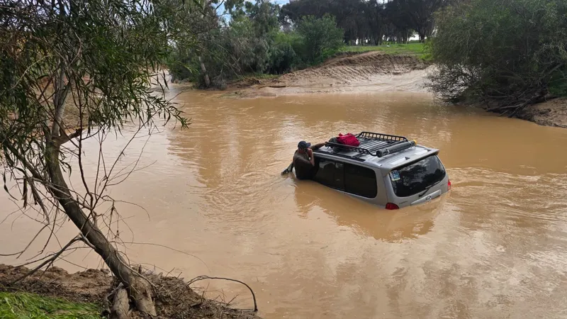 רכב נלכד בנחל רעים שבדרום הארץ – לוחמי האש שהגיעו חילצו את הנהג בשלום באמצעות סולם שהציבו