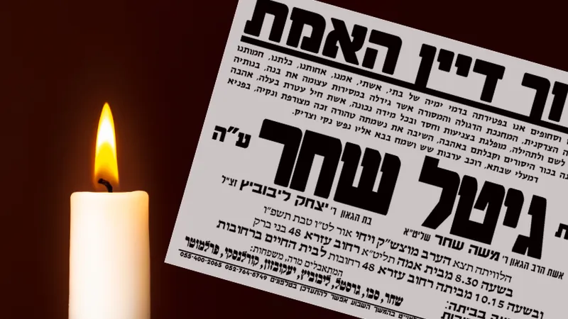 בערב שבת קודש נסתלקה לעולמה מרת חיה גיטל שחר ע"ה והותירה אחריה 5 יתומים בוכים כשהקטנה רק בת 6