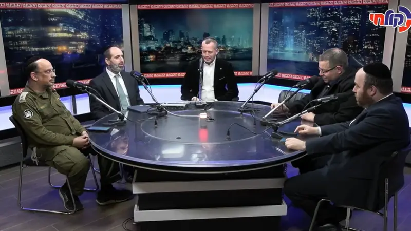 'הקבינט' עם מגיש אורח מיוחד - מגיש מהדורת הבוקר דוד חכם. סביב השולחן: ראש העיר אלעד - יהודה בוטבול, מסביר פיקוד העורף סא"ל במיל' דני כהן, ח"כ צבי סוכות, האסטרטג אליהו ארנד ועו"ד אייל בסרגליק