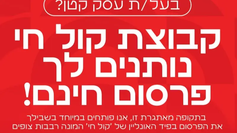 יש לכם עסק קטן? קבוצת קול חי נותנת לכם פרסום חינם! במסגרת המהלך תוכלו לפרסם מודעות בפיד של 'אמס' - ללא עלות