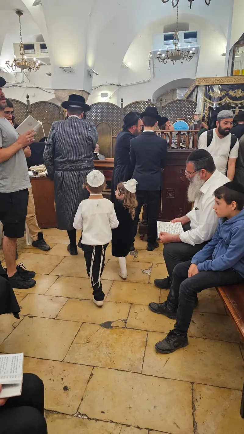 כבר בכניסה לחצר ראינו כמה משפחות עם ילדי החלאק'ה, שהגיעו לקיים את מנהג התגלחת במקום הקדוש, לאחר שחלחלה בקרבם ההבנה כי בל"ג בעומר ההגעה לא תתאפשר.