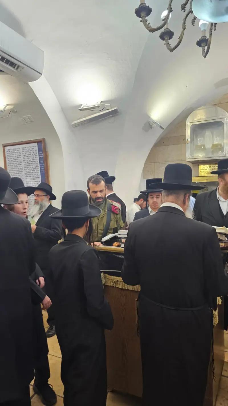 אחרי הרבה תפילות, ובקשות, לישועת הכלל והפרט יצאנו מציונו של הצדיק, בתקווה שתפילתינו התקבלה. שנייה לפני היציאה מהמערה, קלטתי בזווית העין לוחם צה"ל, מתפלל מכל הלב. על התג ראיתי שזהו אל"מ אבינועם אמונה, שאין כאן המקום להאריך במעלותיו. אין מקרה בעולם, הרמז שעלה במוחי הוא שבסוף בסוף, כולנו, גם כוחות הביטחון, מרימים עיניים לשמים, ומצפים לישועת ה'.