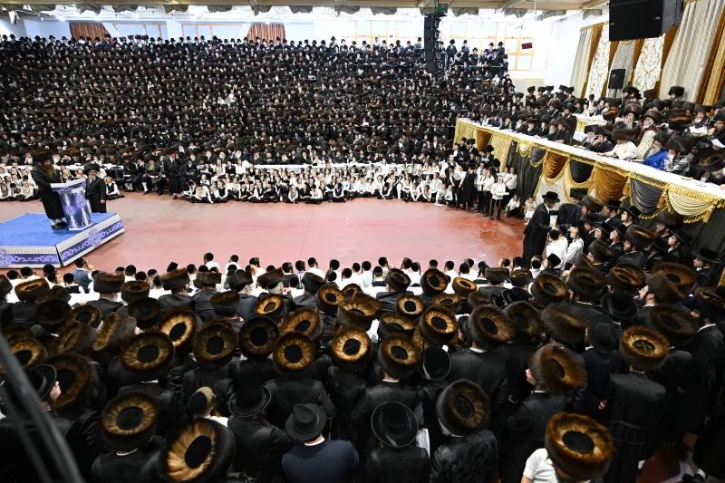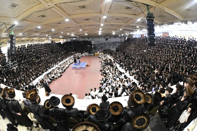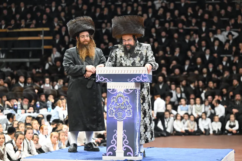 תיעוד משמחת החתונה לנכדת מרן האדמו"ר מצאנז, בת לבנו רבי יוסף משה דוב הלברשטאם וראש ישיבות צאנז, עם בנו של רבי אהרן יוסף הלברשטאם ר"מ בישיבת צאנז בני ברק שהתקיימה ביום שלישי בהיכל רוזנברג בקרית צאנז בנתניה | צילום: משה גולדשטיין
