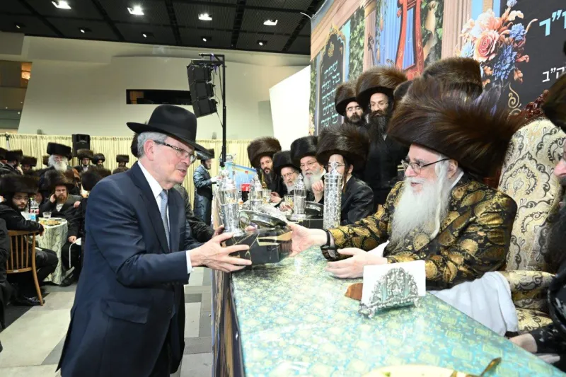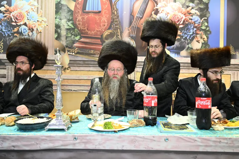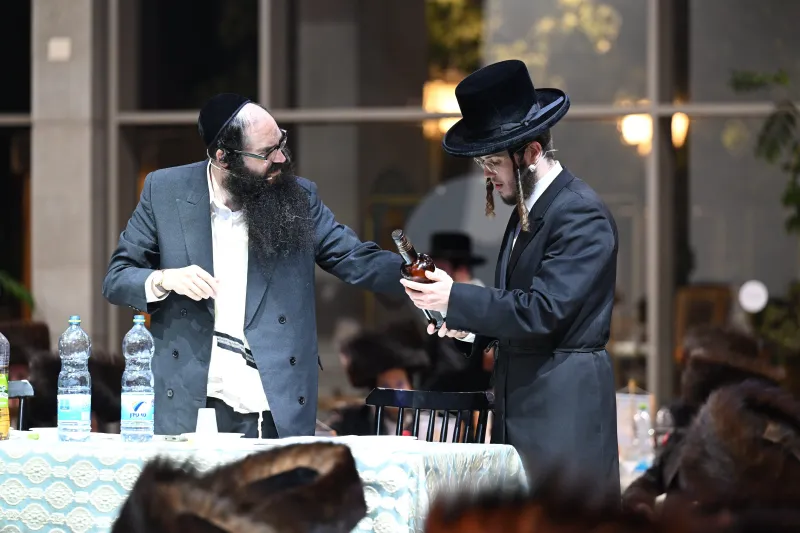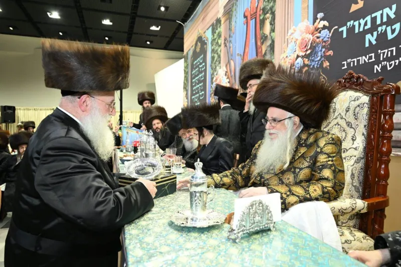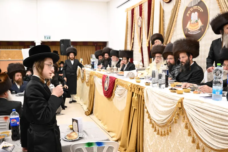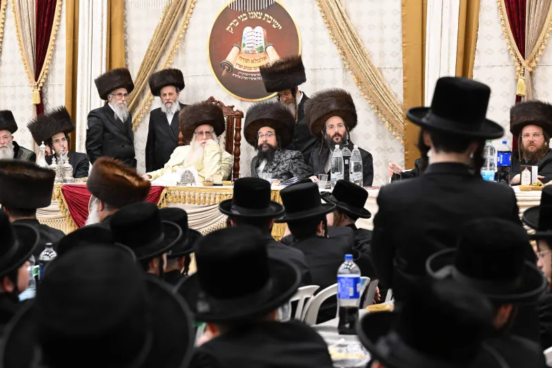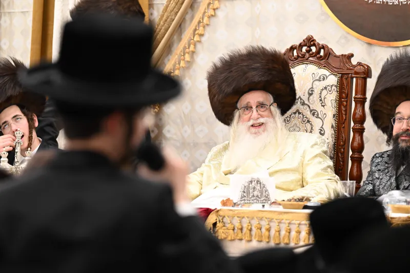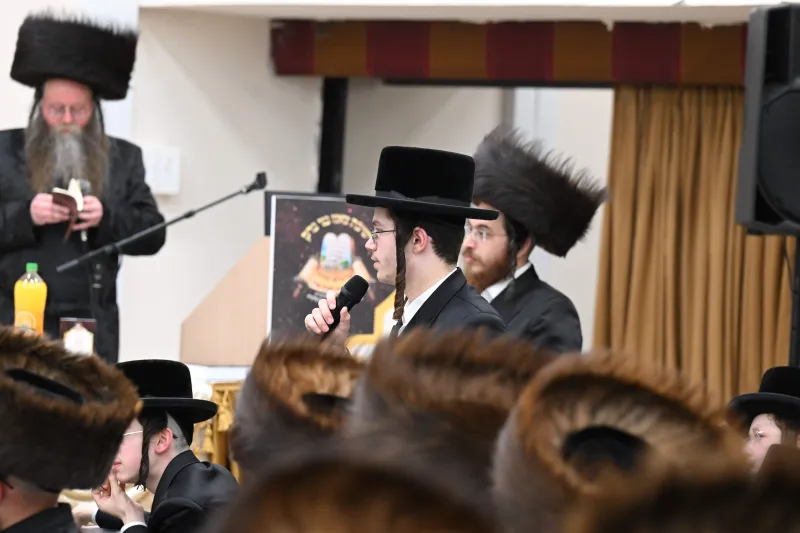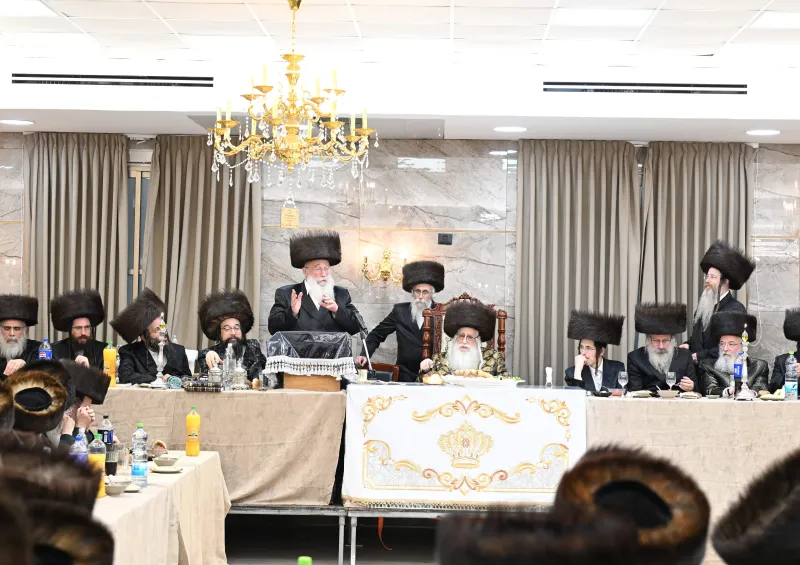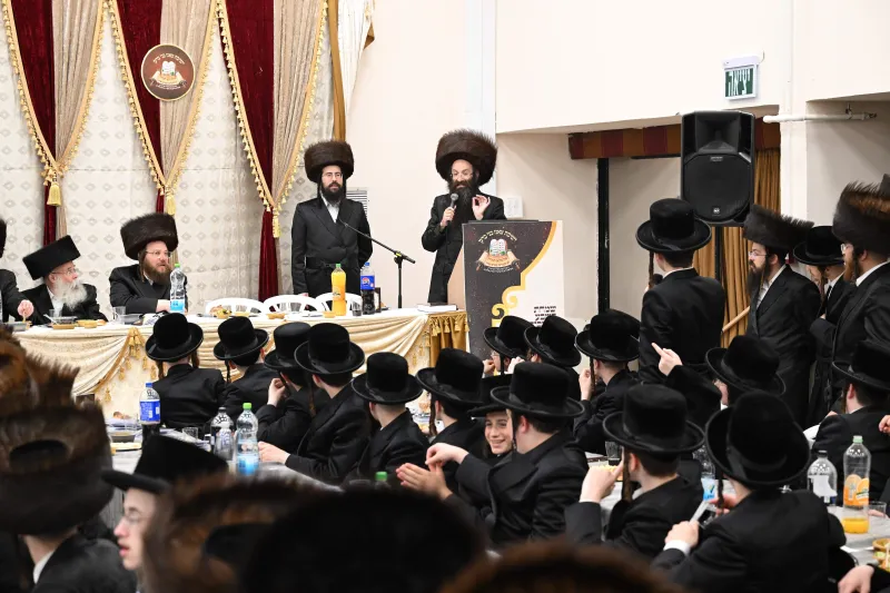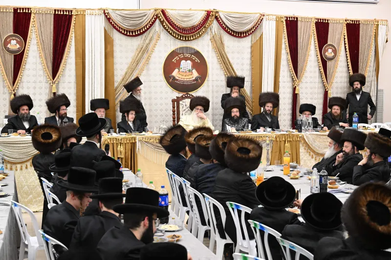 שמחת שבע ברכות לבחורי הישיבה הגדולה בצאנז, במהלכה הגישו הבחורים מנחת ביכורים לאדמו"ר, אלפי דפי גפ"ת שלמדו לרגל השמחה.