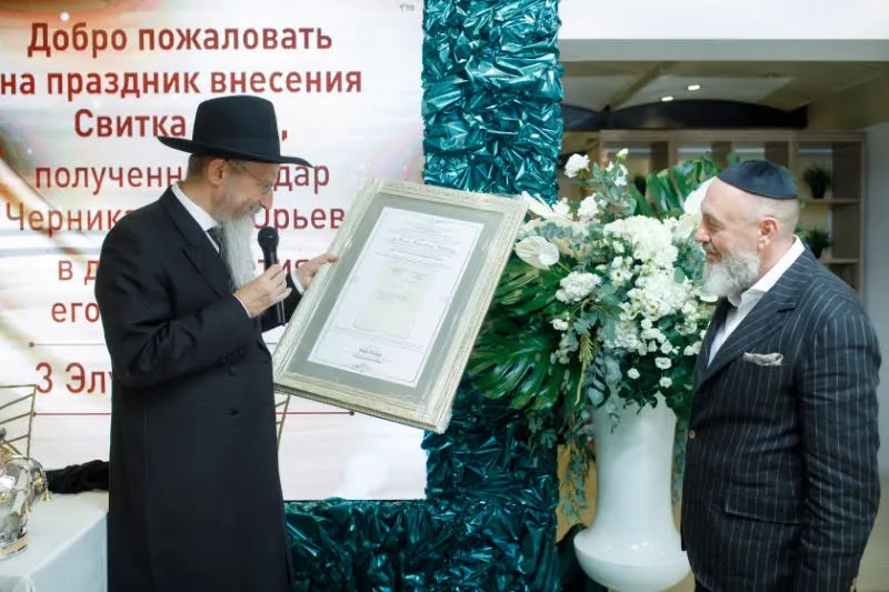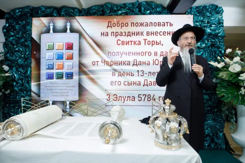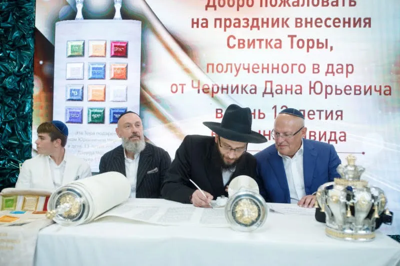 כשעה לפני כניסת השבת, נערך טקס צנוע אך מרגש ביותר, של סיום כתיבת ספר תורה מהודר, באולם הראשי שבמרכז היהודי "מארינה רושצ'ה" במרכז מוסקבה; ועם כניסת השבת, הוכנס ספר התורה אל ארון הקודש שבבית הכנסת הגדול, לקול שירה וזמרה של המתפללים והמשתתפים הנרגשים.
