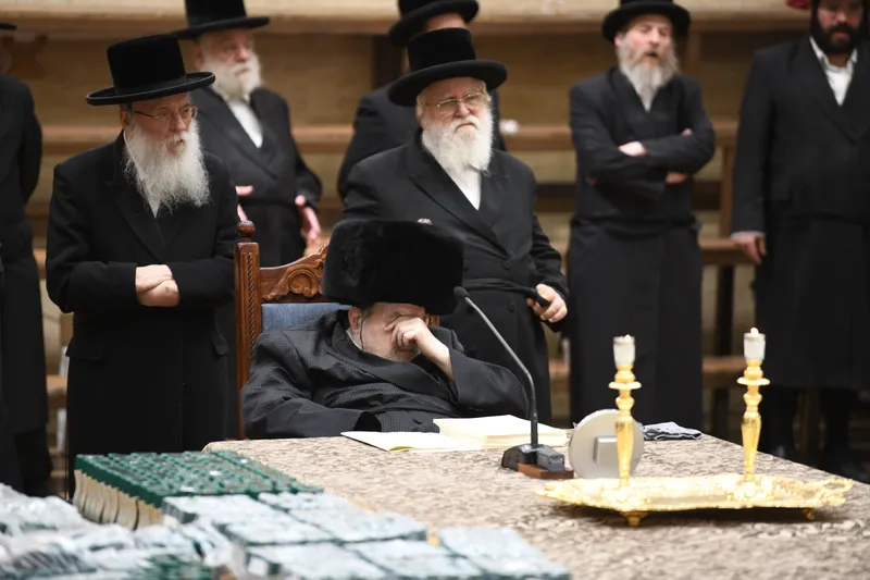 כמידי שנה בשנה גם השנה התקיים מעמד ה"כוללות קוויטל" לאלפי ילדי תלמידי כיתות ז' ח' ט' דחסידי בעלזא שנכנסו למרן האדמו"ר מבעלזא והגישו את הקוויטלאך שלהם. מאות הילדים שרו משירי הימים הנוראים | צילומים: אנשיל בעק וא.מ.ש.