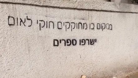על קירות בית הכנסת 'בית אל' בתל אביב רוססו הערב (ראשון) כתובות גרפיטי על ידי אלמונים, באחת הכתובות נכתב "במקום בו מחוקקים חוקי לאום ישרפו ספרים" בנוסף, ובסמוך לבית הכנסת הוצתו ספרים שטרם ידוע אם מדובר בספרי קודש אם לאו.