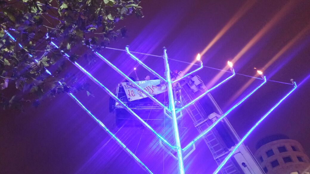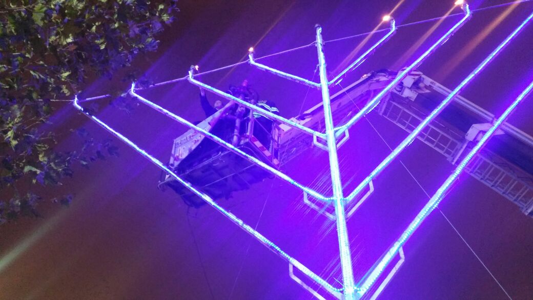 בכל ערב במהלך ימי החג, מגיע צוות עם מנוף גבהים לכיכר ציון בעיר, ובעזרת המנוף מעלה את מדליקי הנרות ובהם אנשי ציבור רבים להדליק את החנוכיה.