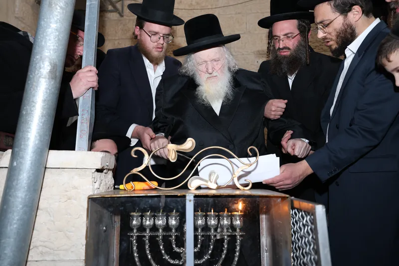 ראב"ד ה'עדה החרדית' הגר"מ שטרנבוך ערך את הדלקת נר שמיני של חנוכה, כאשר הוא מהדר להדליק פעמיים