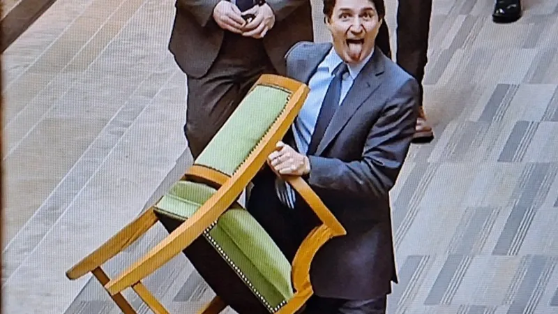 תמונה בלתי שגרתית של ג'סטין טרודו, ראש ממשלת קנדה היוצא, גורמת למבוכה רבה בקנדה. טרודו נצפה אתמול כשהוא עוזב את בית הנבחרים באוטווה נושא כיסא בידיו ומוציא את לשונו החוצה, במחווה שרבים פירשו כסימן זלזול או מחאה.