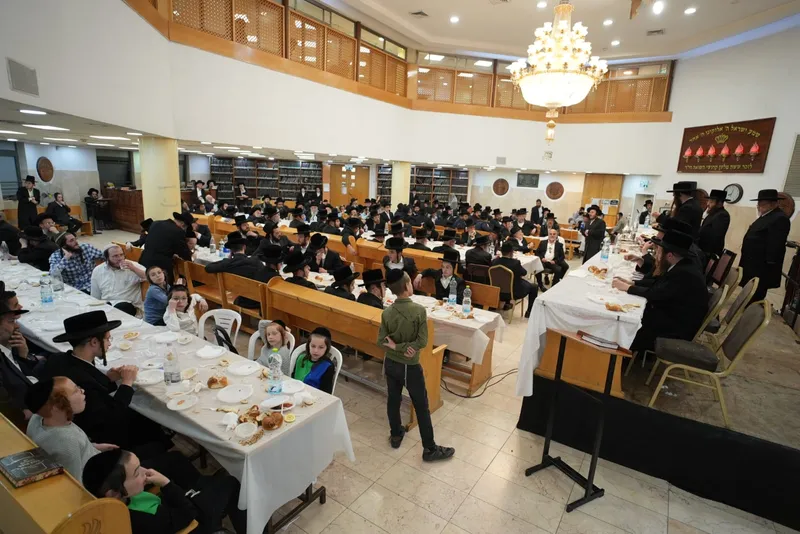 במעמד שוררו משיריו הנודעים של הרבי זי"ע, אשר הפכו לנכס צאן ברזל בקרב כלל שכבות הציבור, כשגעגועים עזים אופפים את הציבור. לאחר מכן ערך האדמו"ר סיום הש"ס שנלמד ע"י בחורי ואברכי החסידות במסגרת מפעל "קנין תורה" שע"י איגוד החבורות דחסידי קאליב, במסגרתו לומדים ונבחנים הבחורים על מסכתות הש"ס.