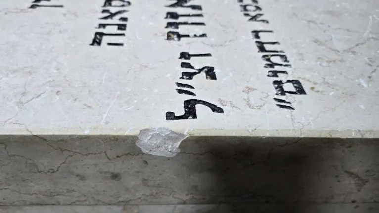 שבר במצבה ועוד שריטות שנעשו בכלי משחית על שמו של מרן זצ"ל התגלו על המצבה.