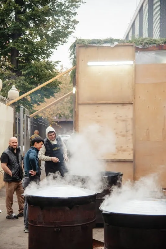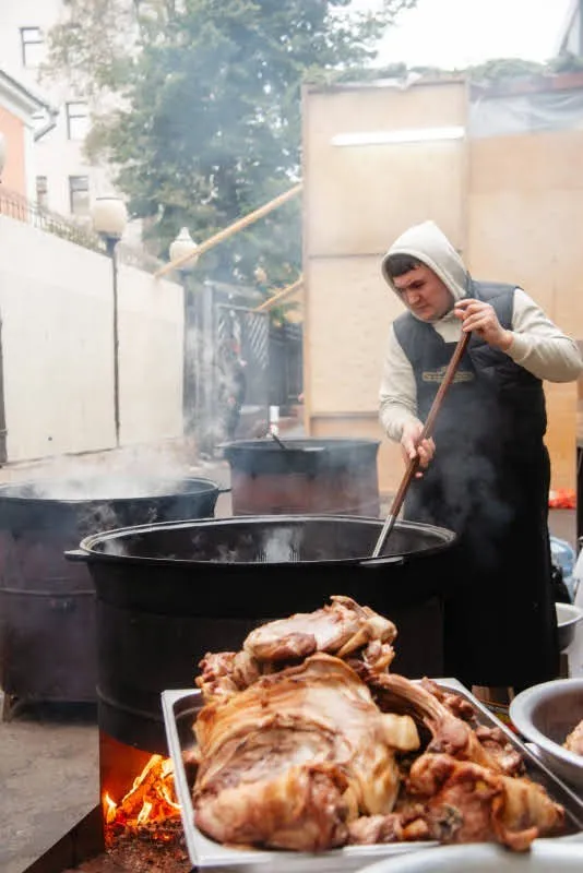 המטבחים במוסקבה עבדו ללא הפסקה להכנת סעודות החג, והצלם לוי נאזרוב תיעד את רגעי השיא של החגיגות – מאיגוד המינים ועד לריקודים ברחובות.
