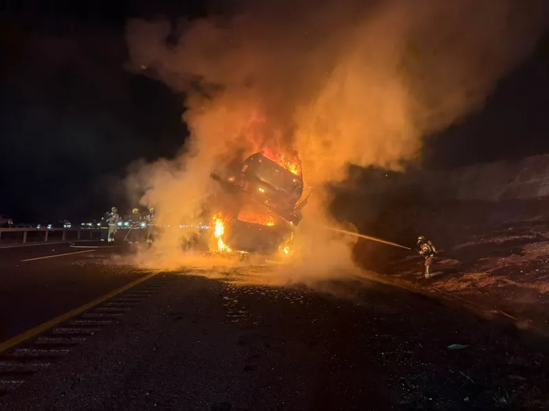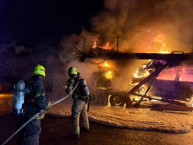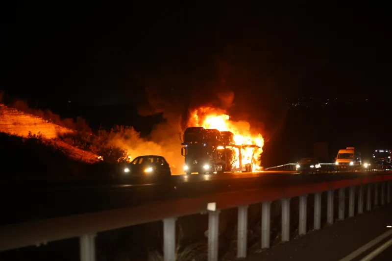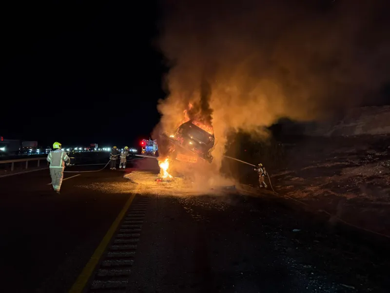 מפקד האירוע, רב רשף מיכאל גולדנברג: "בהגיענו למקום הבחנו במספר רכבים שעל המשאית שעולים באש, ביניהם רכבים חשמליים. האש התפשטה לשטח פתוח סמוך, ולוחמי האש פועלים לבלום את הלהבות ולכבות את מוקדי השריפה".