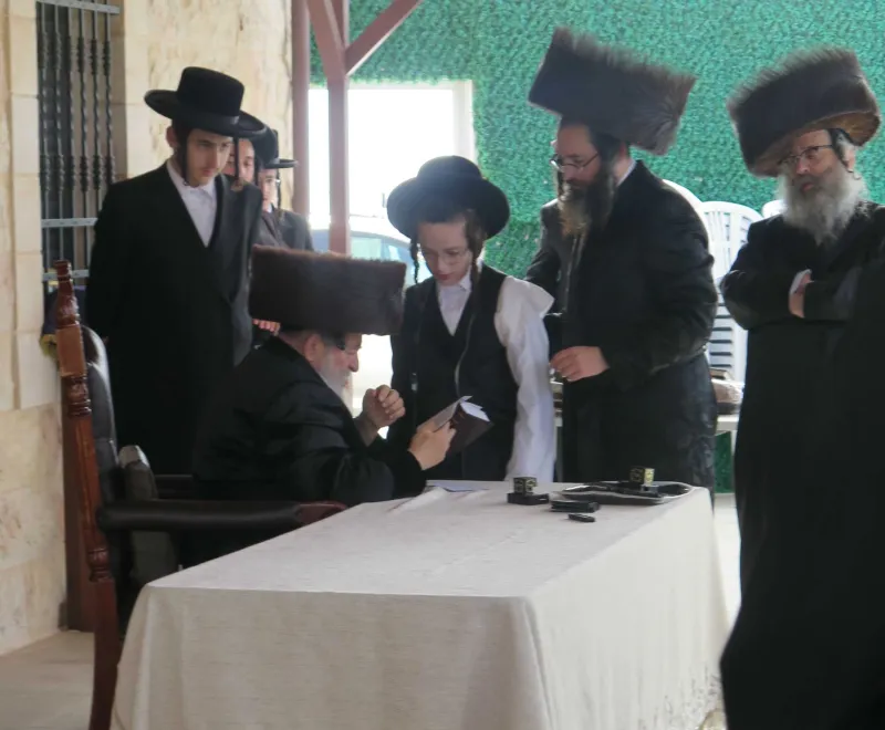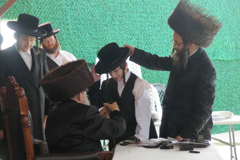 מרן האדמו"ר מויז'ניץ חגג במעון המנוחה במושב אורה, הנחת תפילין ומסיבת לחיים לנינו הבחור משה יהושע מייזליש בן הרב משולם זושא מייזליש, ושמחת ה'חאלאקע' לנינו משולם זוסיא מייזליש בן הרב זאב מייזליש, נכדי חתנו הגה"צ ראש ישיבת סאטמר ב"ב.