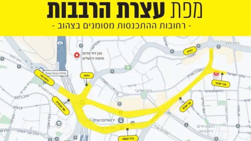 העצרת תתפרס על פני הרחובות בשערי העיר ירושלים, מגשר המיתרים לכיוון הכניסה לעיר עד תחנת הדלק ומשם לאורך רחוב ירמיהו עד רחוב הצבי, ומצידו השני של הגשר לאורך שדרות שז"ר וכן לאורך רחוב יפו עד למקום מפגשם עם רחוב שרי ישראל, ומשם לאורך שרי ישראל עד לרחוב ירמיהו, וכן ברחוב מלכי ישראל עד ברנדס.