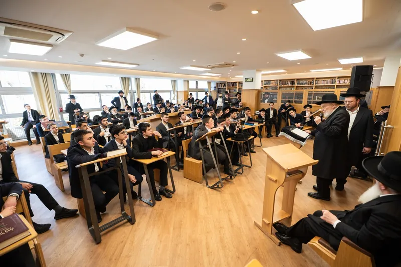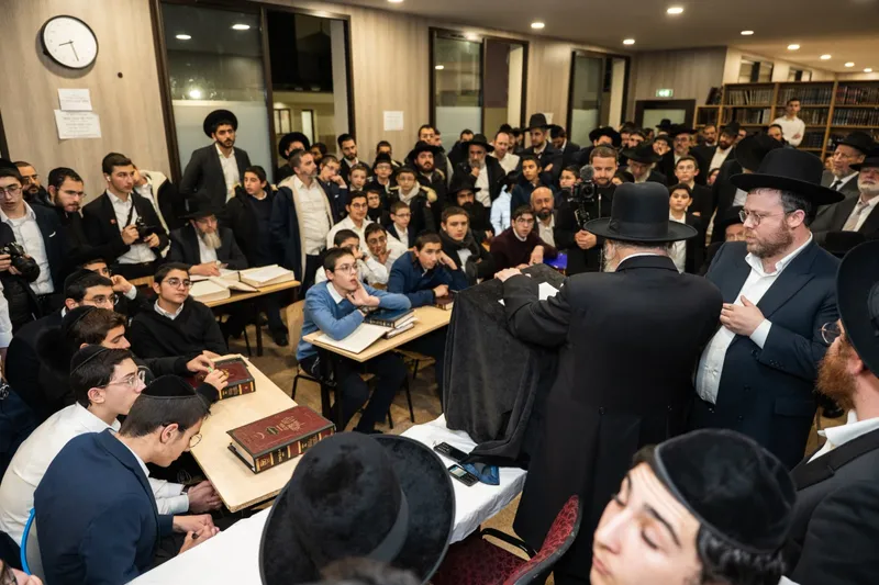 משם נסע ראש הישיבה לדינר מיוחד השתקיים בביתו של הנגיד דב קוריאל בראנסיי, ולאחר מכן המשיך לאירוע המרכזי של קהילת יד מרדכי פריז שבראשות הגרי כ"ץ. מאות ילדי המוסדות קיבלו את פניו בזירה אדירה. מרן נעמד ובירכם בחצר. לאחר מכן נכנס להיכל בית המדרש ומסר שיחת חיזוק מיוחדת בפני אברכי הכולל ובחורי הישיבה: כיצד מתעלים בקרבה להקב"ה. ביציאה ליוו את מרן מאות מבני הקהילה בשירה וריקודים ברחובות פריז כיאה לכבודה של תורה.