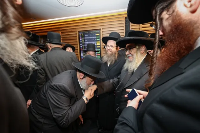 הישר משדה התעופה הגיע האדמו"ר לביתו של מרן הגאון רבי משה שטרנבוך, משם המשיך האדמו"ר לקבלת פנים מיוחדת שנערכה לכבודו בלשכת הבית דין צדק הגדול בירושלים.