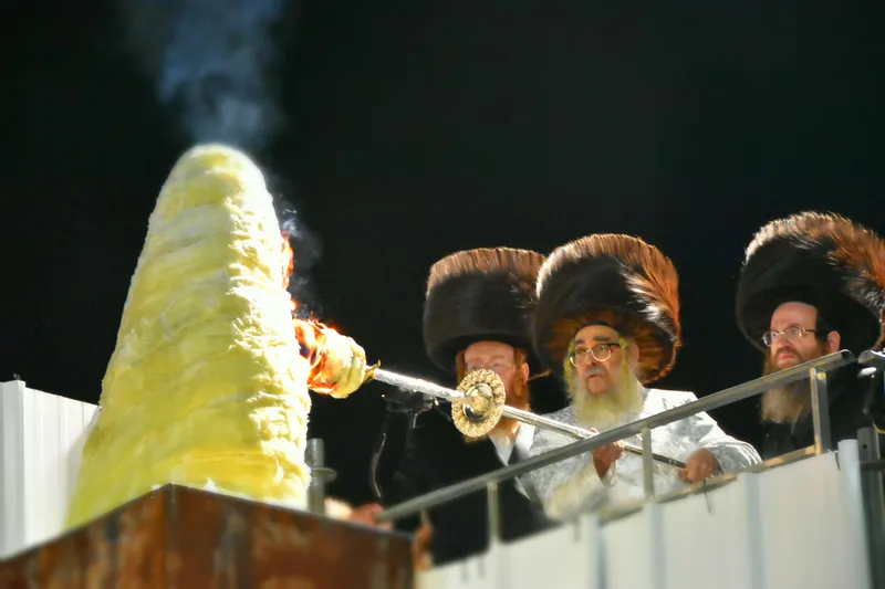 שיאו של המסע ההיסטורי של האדמו"ר מסאטמר בישראל: אלפי חסידי סאטמר מארה"ב אירופה וישראל, משתתפים בשעה זו במעמד הדלקה ענק של האדמו"ר מסאטמר במתחם בויאן בהר מירון, שיאו של המסע שהחל בירושלים וימשיך בשבוע הבא בבני ברק.