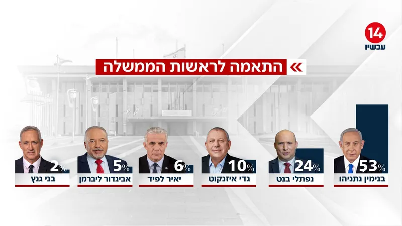 ובאופוזיציה: הדמוקרטים של יאיר גולן מובילה עם 12 מנדטים, ישראל ביתנו – 11 מנדטים, מפלגת בנט – 10 מנדטים, ישר – 7 מנדטים, רע"מ – 5 מנדטים, חד"ש-תע"ל – 5 מנדטים, יש עתיד- 4 מנדטים.