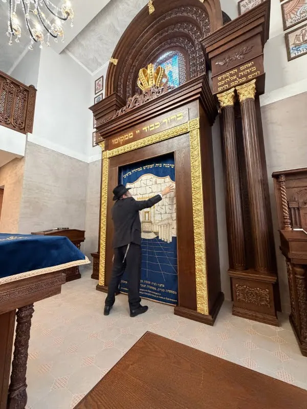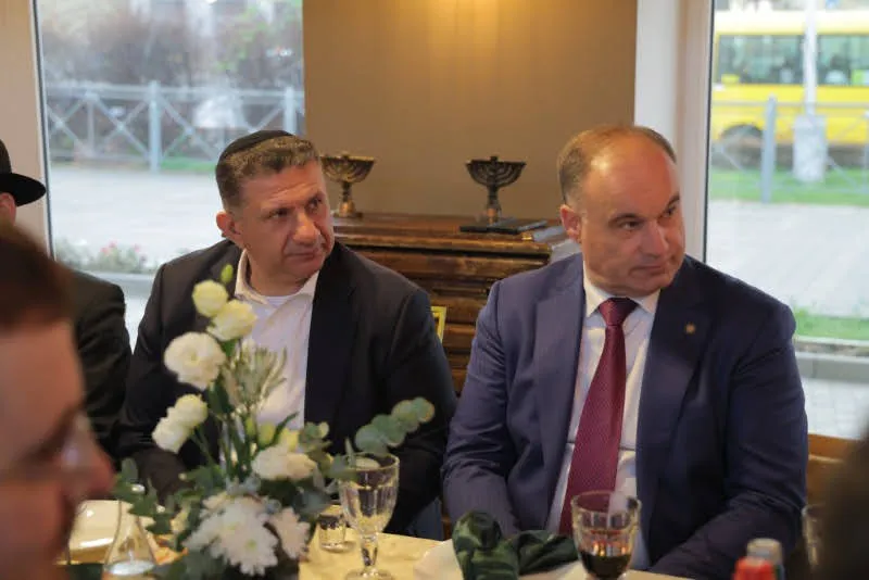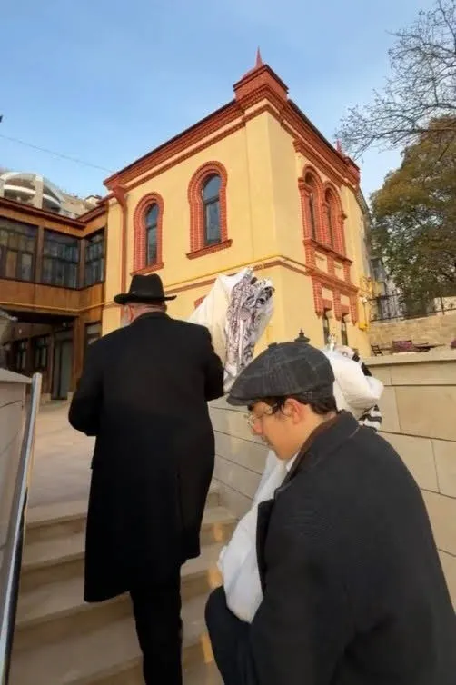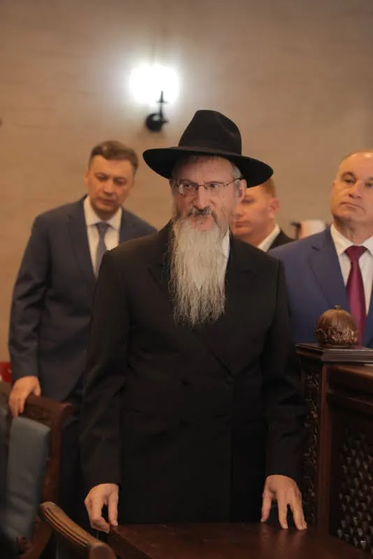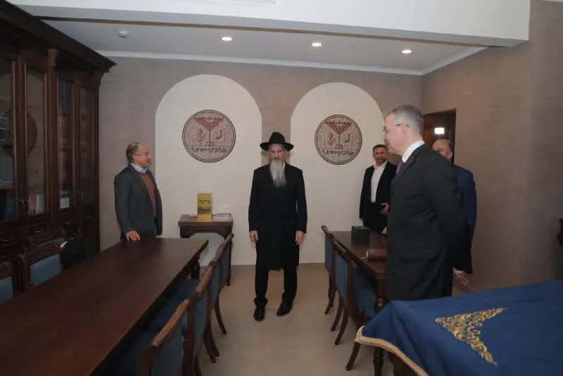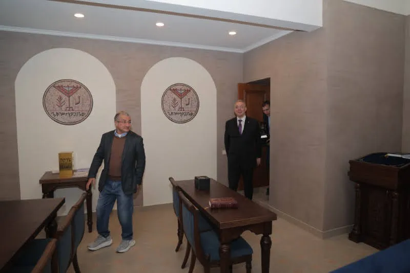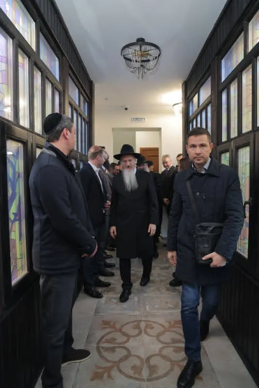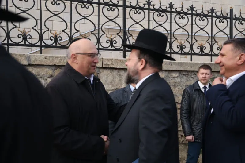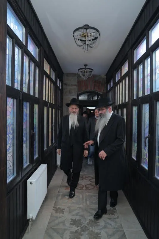 מושל המחוז, ראש העיר, נכבדי העיר וראשי הקהילה ובראשם רב הקהילה הר' עקיבא חודינטוב, קידמו את פני האורח, ובמשך שעה ארוכה סיירו יחד בשני המבנים ההיסטוריים, ועמדו נפעמים אל מול התוצאה המבורכת והמפוארת בהחזרת העטרה ליושנה, שהתאפשרה אודות לתמיכת הממשל והנגיד מר נאום בבאבייב, יליד המקום העיר, יחד עם תורמים נוספים מידידי הקהילה.
