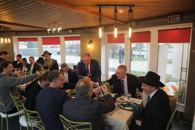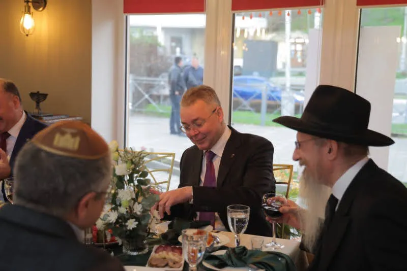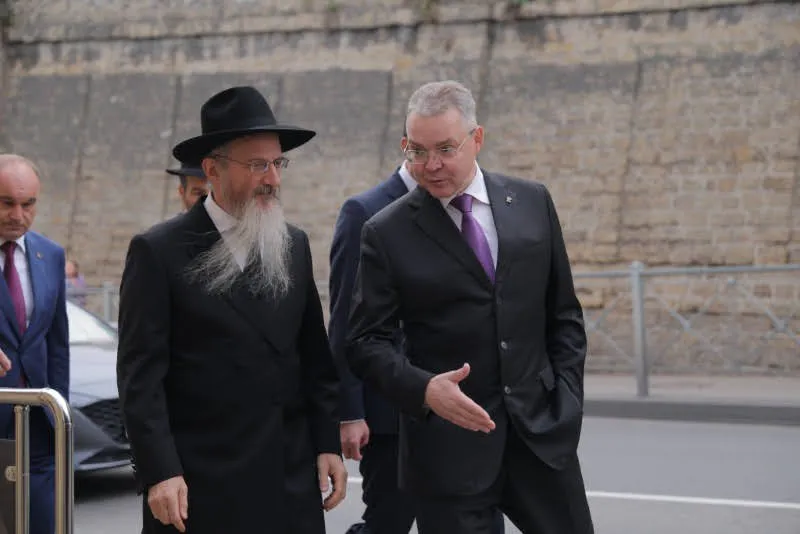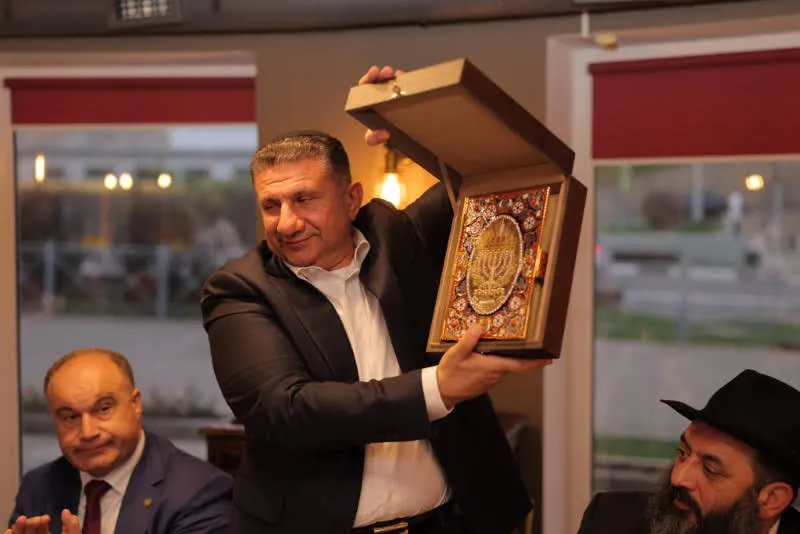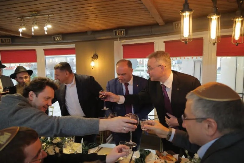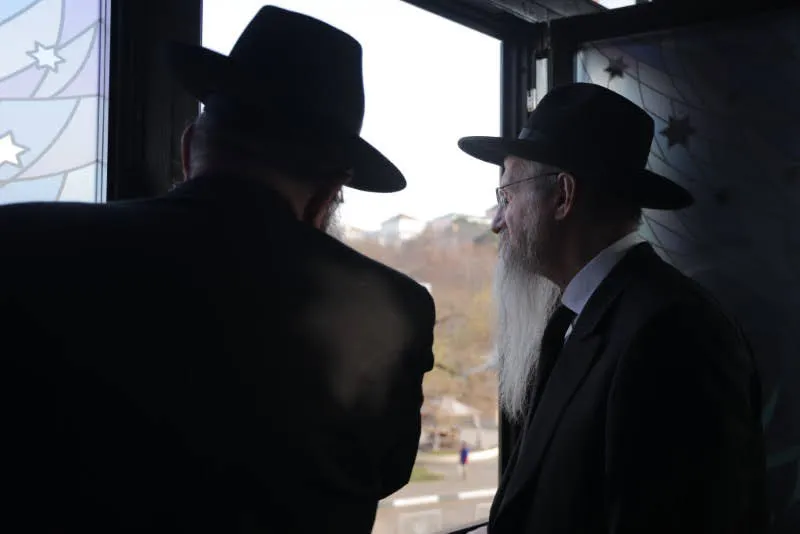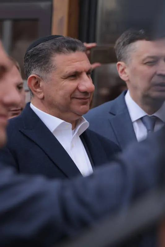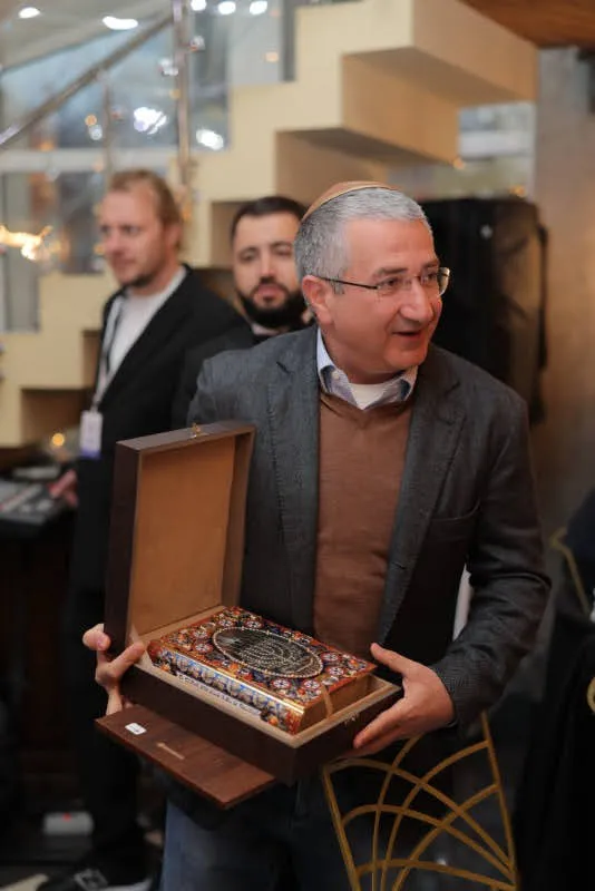 מושל המחוז, ראש העיר, נכבדי העיר וראשי הקהילה ובראשם רב הקהילה הר' עקיבא חודינטוב, קידמו את פני האורח, ובמשך שעה ארוכה סיירו יחד בשני המבנים ההיסטוריים, ועמדו נפעמים אל מול התוצאה המבורכת והמפוארת בהחזרת העטרה ליושנה, שהתאפשרה אודות לתמיכת הממשל והנגיד מר נאום בבאבייב, יליד המקום העיר, יחד עם תורמים נוספים מידידי הקהילה.