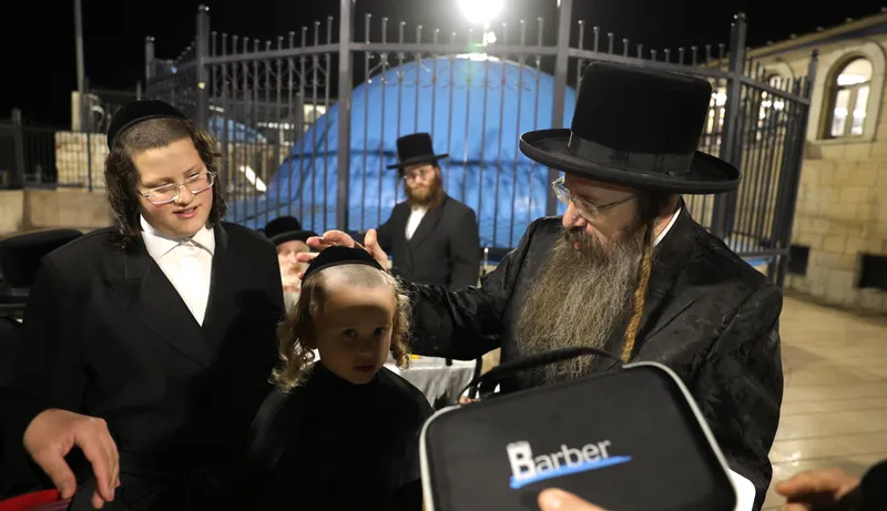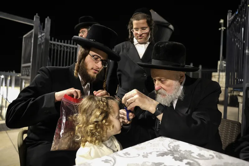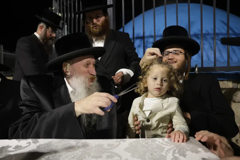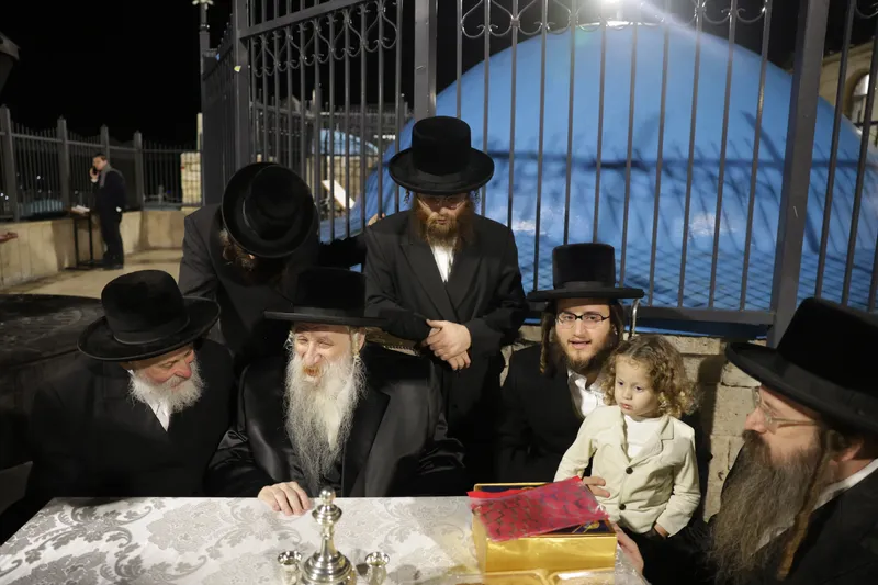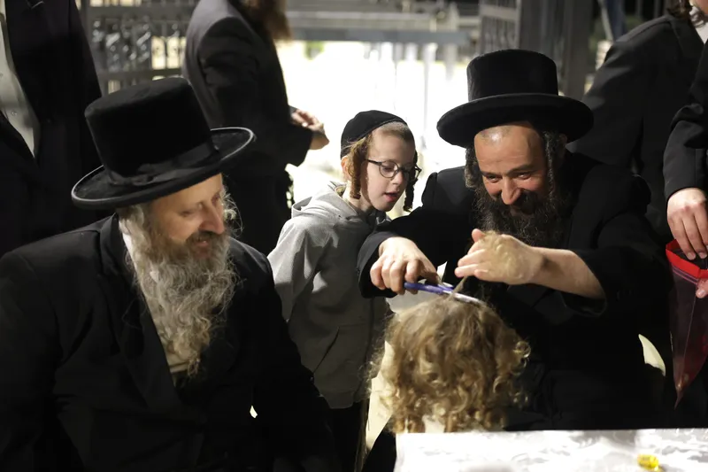 שמחת החלאקה לנין האדמו"ר מטשארנאביל נכד לבנו הרה"צ ר' שמואל משה טווערסקי אב"ד טשארנאביל בן לחתנו הרב יהודה ארנסטר ונין הגר"ז ארנסטר אב"ד מאור חיים ירושלים והגרי"מ שצדרוביצקי מסטרעטין.