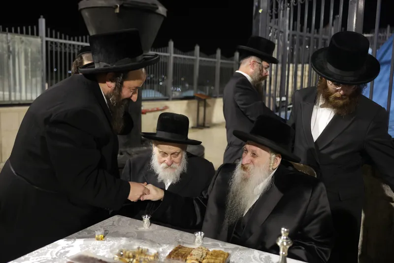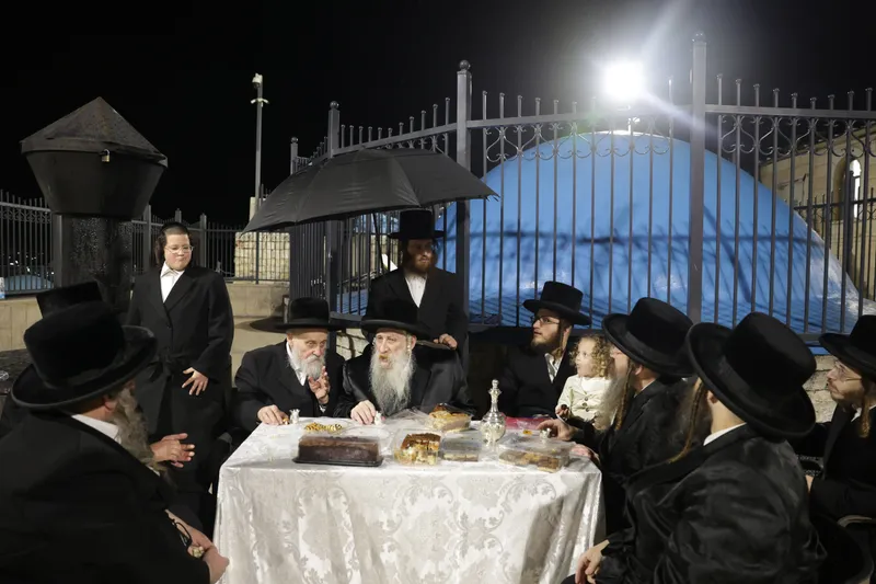 תיעוד משמחת החלאק'ה לנינו של האדמו"ר מטשארנאביל שנערכה בחצר הרשב"י במירון
