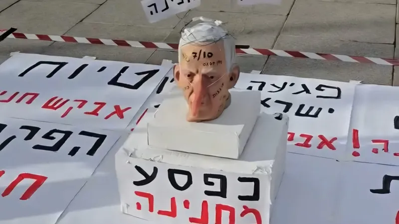 לאחר שהוצג מיצג מחאה מחריד הבוקר (שלישי) בסמוך לבית המשפט המחוזי בתל אביב, בזמן שראש הממשלה בנימין נתניהו העיד שם, מפלגת הליכוד הגישה תלונה רשמית למשטרת ישראל.