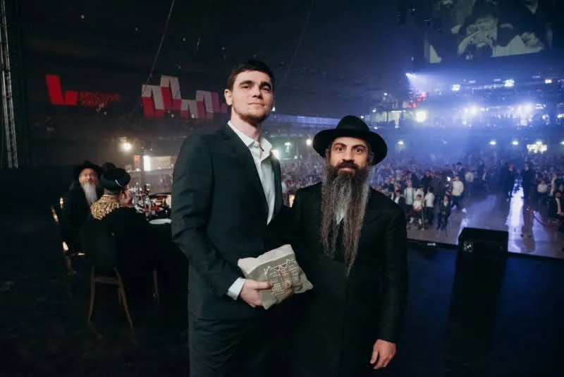 צמרמורת של התרגשות עברה בין אלפי המשתתפים, עת הוזמן אל הבמה שורד השבי מקסים הרקין. הגר"ב לאזאר נטל את כוס היין בידו, ובירך את ברכת נתינת השם לניצול מעזה ששהה בשבי החמאס במשך 738 ימים, ובבוקר זה זכה להיכנס בבריתו של אברהם אבינו, כשהרב שליט"א משמש כסנדק, אחר כך הניח לו תפילין, וכעת קיבל את השם זלמן-זעליג, על שם סבו מצד אמו ולכבוד חג הגאולה.