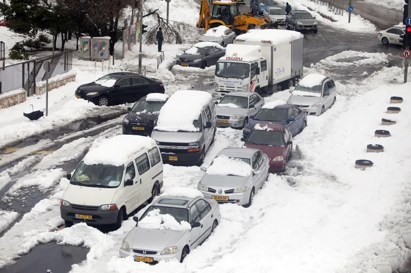 השלג הכבד שיתק במהירות את ירושלים והאזורים ההרריים. כל כבישי הגישה לעיר ממערב – כביש 1, 443 ו־375 – נחסמו, ומאות ואף אלפי נהגים נלכדו במבואות העיר. אולמות ומרכזי חירום נפתחו בבנייני האומה, מבשרת ציון ומחנה עופר, כדי לקלוט את התקועים. גם ימים לאחר תום הסופה נותרו כבישים חסומים, עומסי תנועה כבדים וקרח מסוכן על האספלט.