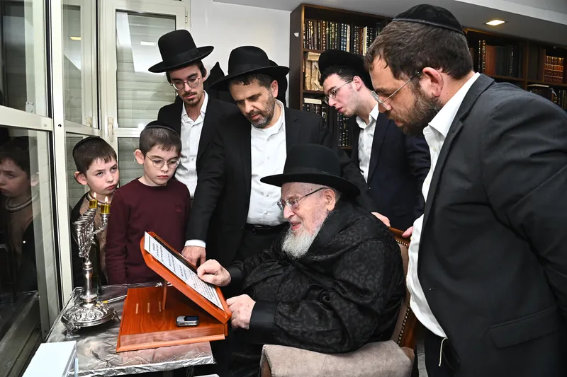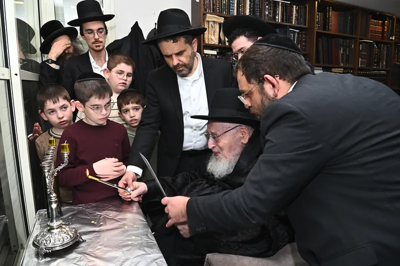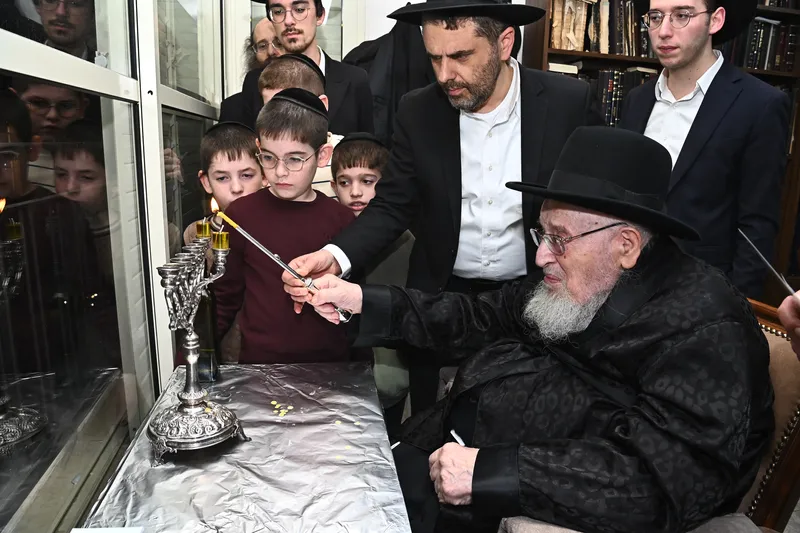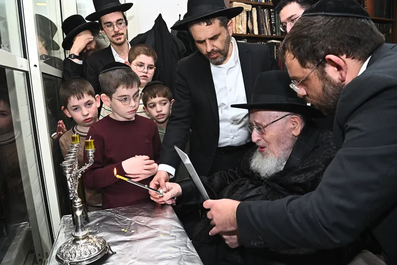 תיעוד מהדלקת נר ראשון של חנוכה אצל מרן הגאון רבי מאיר צבי ברגמן.
