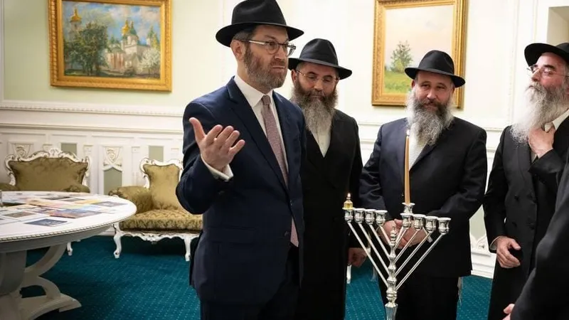 את ההדלקה ערכו יו"ר הקהילות היהודיות באוקראינה הרב מאיר סטמבלר, סגנו הרב רפאל רוטמאן – אחראי קשרי החוץ של 'הפדרציה' שארגן את הפגישה, וכן שלוחי חב"ד, האחים הרבנים לבית וולף; הרב אברהם וולף רבה של אודסה ודרום אוקראינה והרב יוסף יצחק וולף רבה של חרסון.