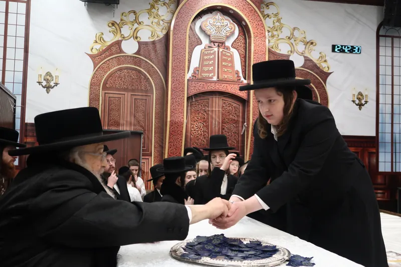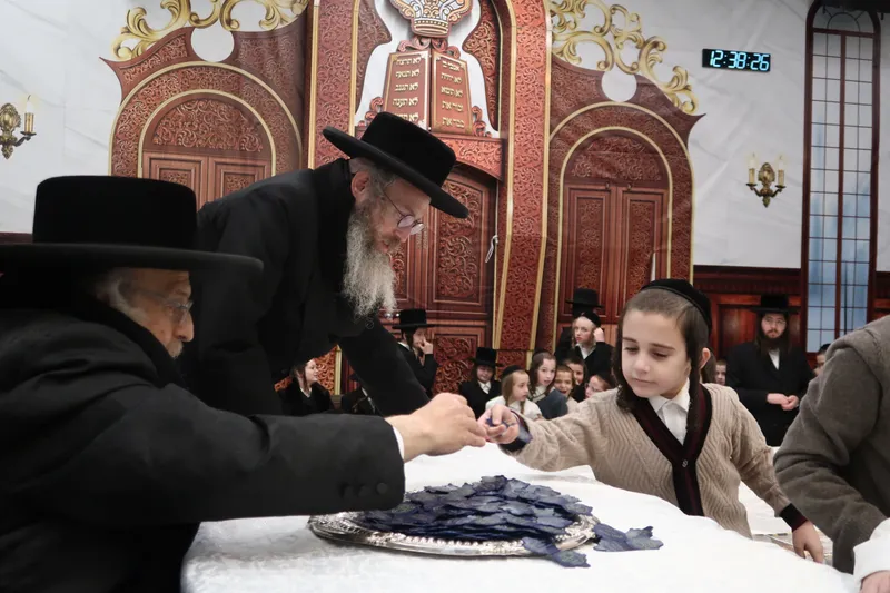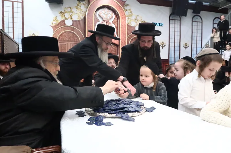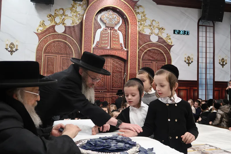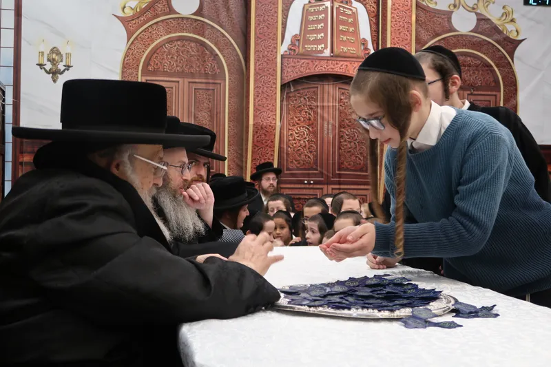 האדמו"ר מפינסק קרלין חילק דמי חנוכה בתלמוד תורה 'אהל אברהם אלימלך' דחסידי פינסק קרלין שבנשיאותו