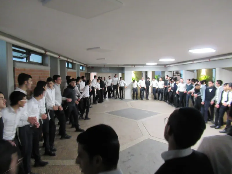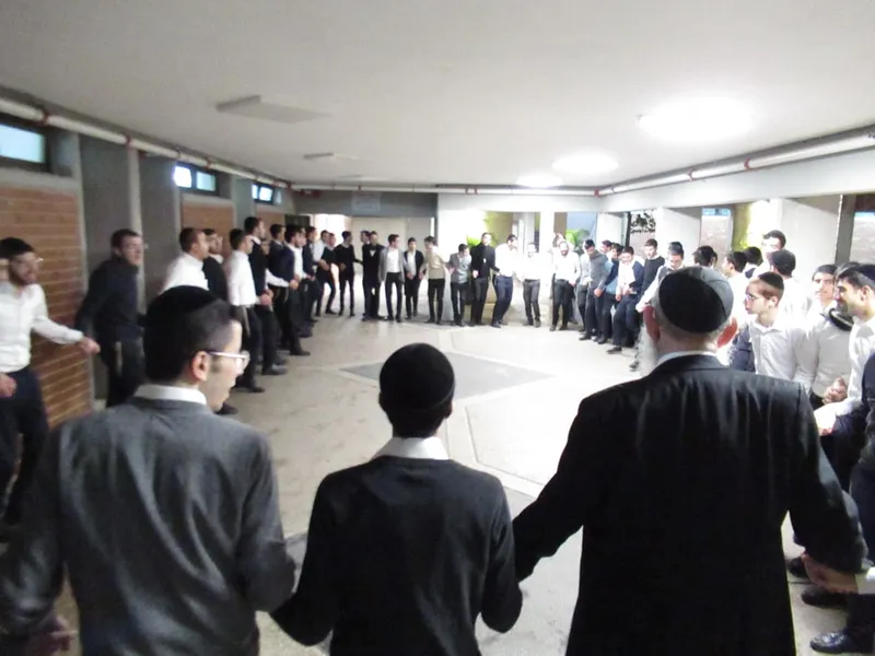 ראש ישיבת ״בית שמעיה״ הגר״ש אנגלנדר הדליק נרות חנוכה עם תלמידי הישיבה שפצחו בריקודי שמחה | צפו
