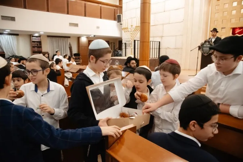 לצד ישיבת בין הזמנים בבית הכנסת המרכזי, נערכו מסיבות מיוחדות לתלמידים בחברת תהלים ונערך אירוע חג מרכזי בשילוב התוכנית של לימודי 'אבות ובנים'. לאחר שעת הלימוד השבועית, נערכה הגרלה על מנורת חנוכה בין הילדים הרבים, ושמחת החג נמשכה שעה ארוכה, בשילוב דברי תורה וחלוקת דמי חנוכה.