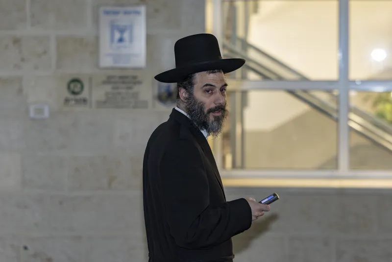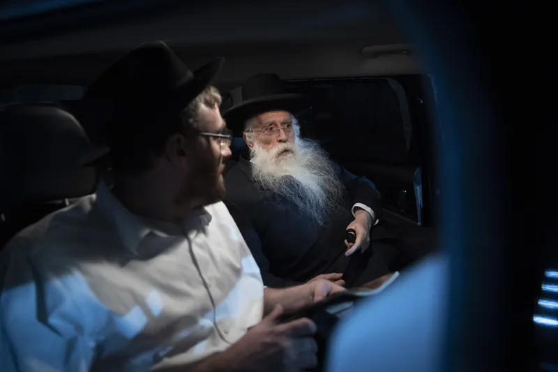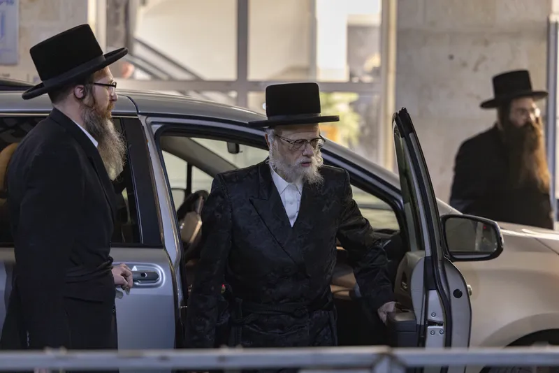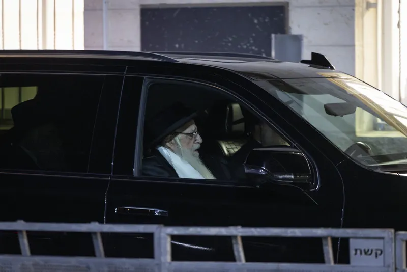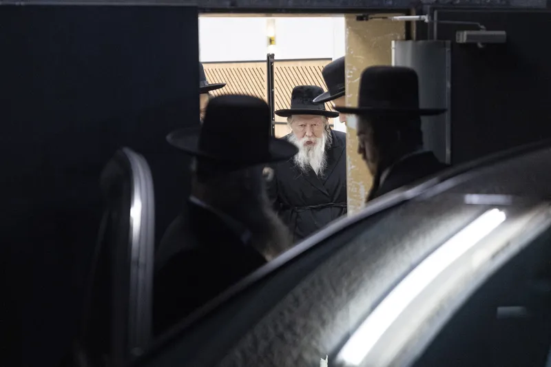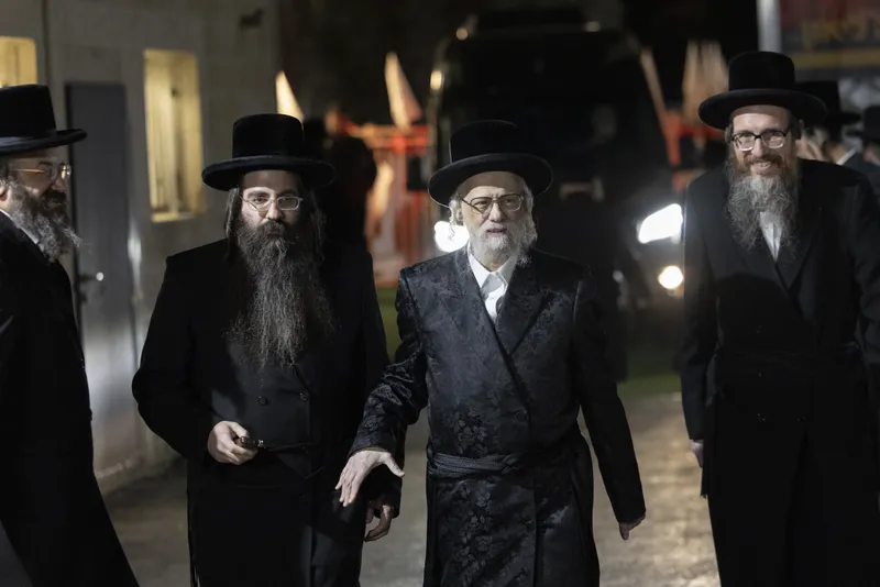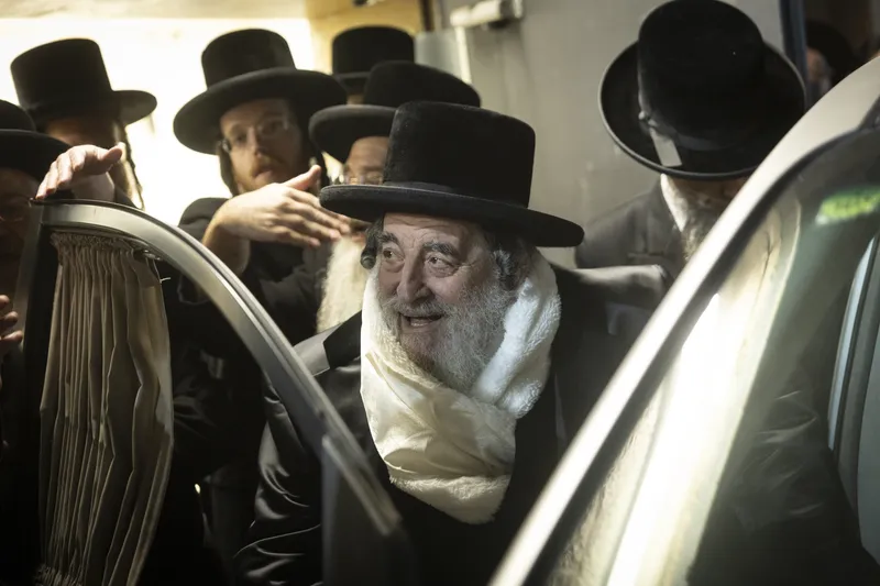 יציאת מרנן האדמו"ר מצאנז מישיבת המועצת | צילום: בני דקל >>>