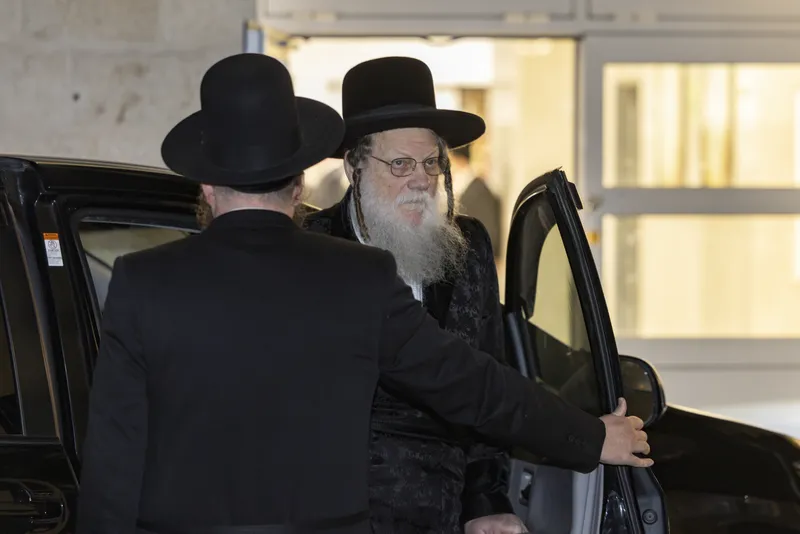 יציאת מרנן האדמו"רים מסערט ויזניץ ובעלזא מישיבת המועצת | צילום: בני דקל >>>