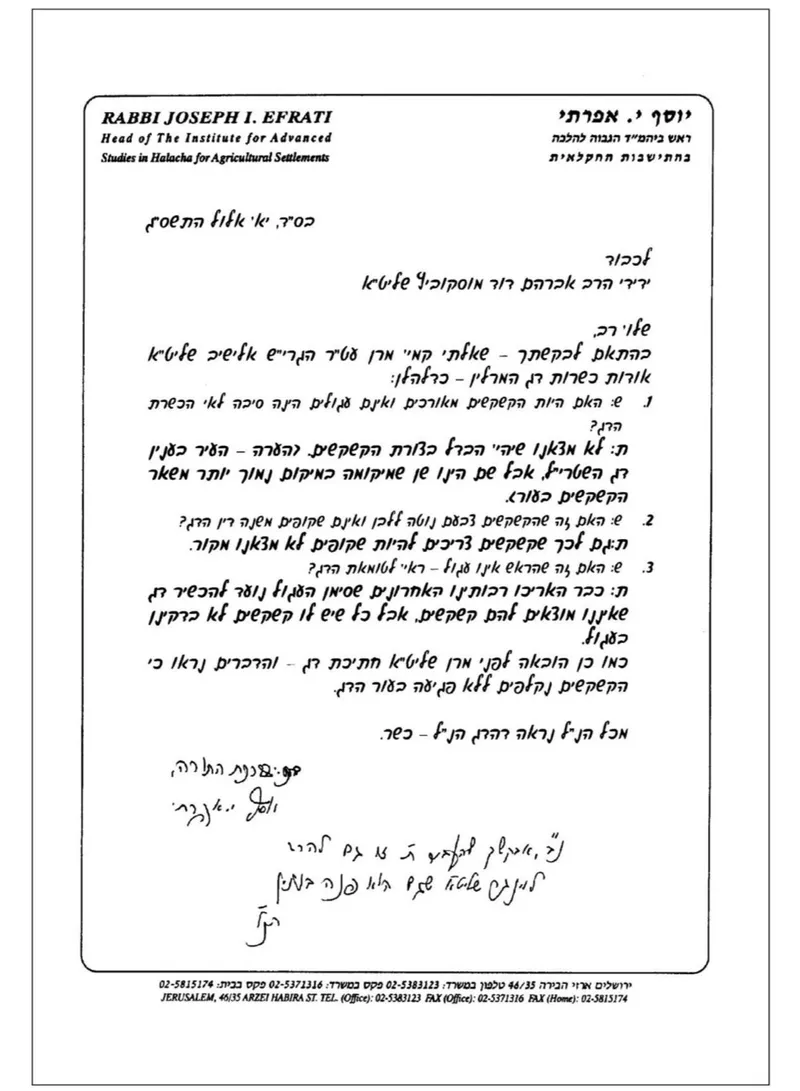 הגאון הרב אלישיב זצ״ל פסק להיתר בשופי. מצורף: מכתב נאמן ביתו הגאון הרב יוסף אפרתי.