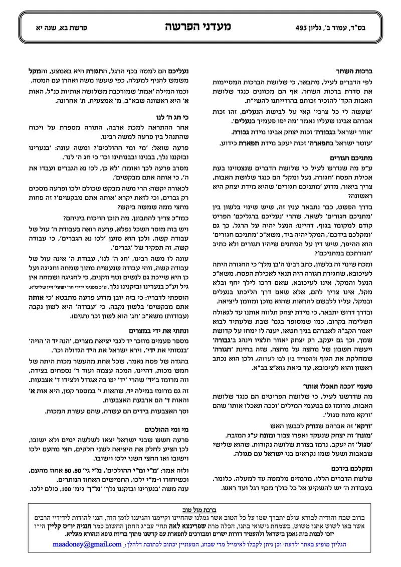בס"ד, יום חמישי לפרשת בא ה' שבט תשפ"ה. לידידיי ומכריי קוראי ומתענגי הגליון 'מעדני הפרשה'.