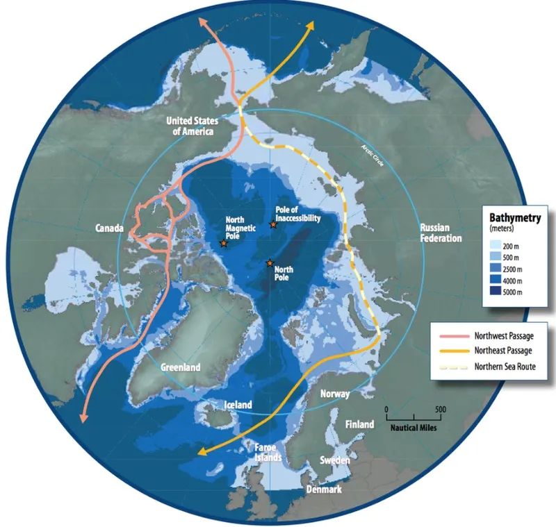 עד לפני כשני עשורים נתיב השיט שנקרא "המעבר הצפון-מזרחי" העובר מזרחית לגרינלנד ומערבית לחופי רוסיה, או רעהו "המעבר הצפון-מערבי" העובר לאורך חופי קנדה ומערבית לגרינלנד היו נתיבים ששייט התאפשר בהם רק משך חודשיים בשנה, בזמן הפשרת השלגים והקרחים, וגם אז היה זה רק לספינות קטנות ולבעלי אומץ יוצא דופן.