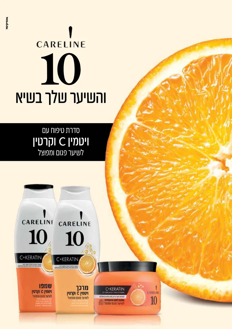 בעולם הטיפוח, 'קרליין 10' מבית 'סנו' בקמפיין דיגיטל ועיתונות בולטים ווקא בגלל מה שאין. אין עומס. יש רקע לבן, בקבוקי שמפו, ולידם חצי תפוז עסיסי ענק שפשוט קופץ לעין. הכיתוב "השיער שלך בשיא" יחד עם הצבע הכתום הבוהק, משדרים בריאות, רעננות וויטמין C בצורה הכי חדה וברורה שיש, בלי להכביר במילים.
