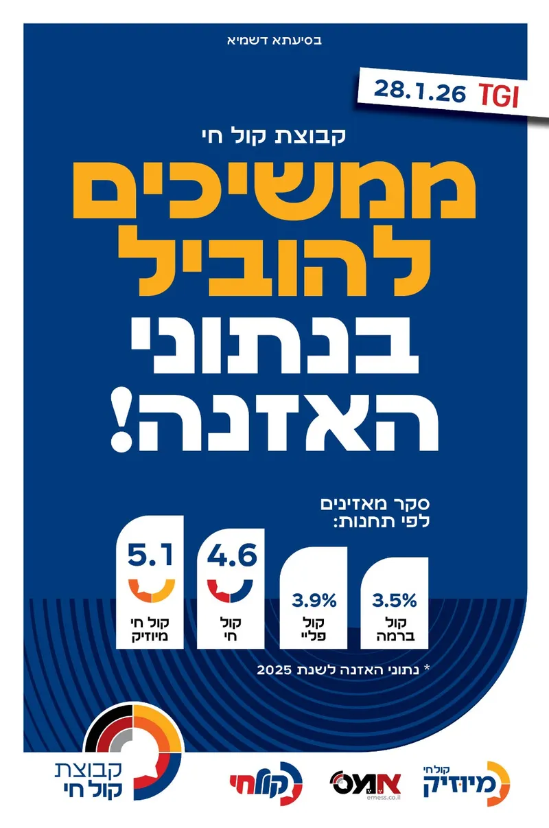 נתוני TGI, כידוע, נחשבים למדד המרכזי והאמין ביותר לבחינת הרגלי האזנה בישראל – והמספרים של 2025 מציבים את קבוצת קול חי כשחקן מוביל ומשפיע בזירה.