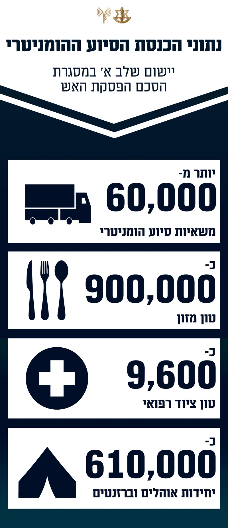 גם ביחס למציאות הנוכחית, בצה"ל מותחים ביקורת על היקף הסיוע הנכנס, העומד על כ-650 משאיות מדי יום (כ-4,200 בשבוע). לפי גורמי הצבא, אפילו נתוני האו"ם מצביעים על צורך ב-134 משאיות בלבד ליום, אולי מעט יותר עם ציוד רפואי, אך בוודאי לא הכמויות האדירות שנכנסות כיום במימון אמריקאי. המציאות בשטח עגומה: חמאס משתלט על המשאיות, גובה מחירים מופקעים מהתושבים וממשיך לשלוט כלכלית ברצועה. ההמלצה הצבאית היא חד משמעית: להוריד משמעותית את כמות המשאיות ולמנוע את פתיחת רפיח לסחורות.