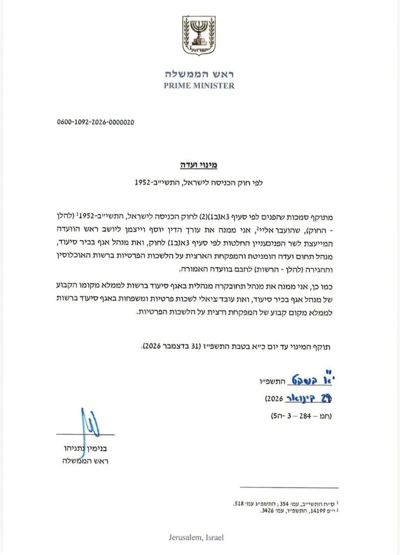 "מודה לראש הממשלה על האמון הגדול והמנוי החשוב.