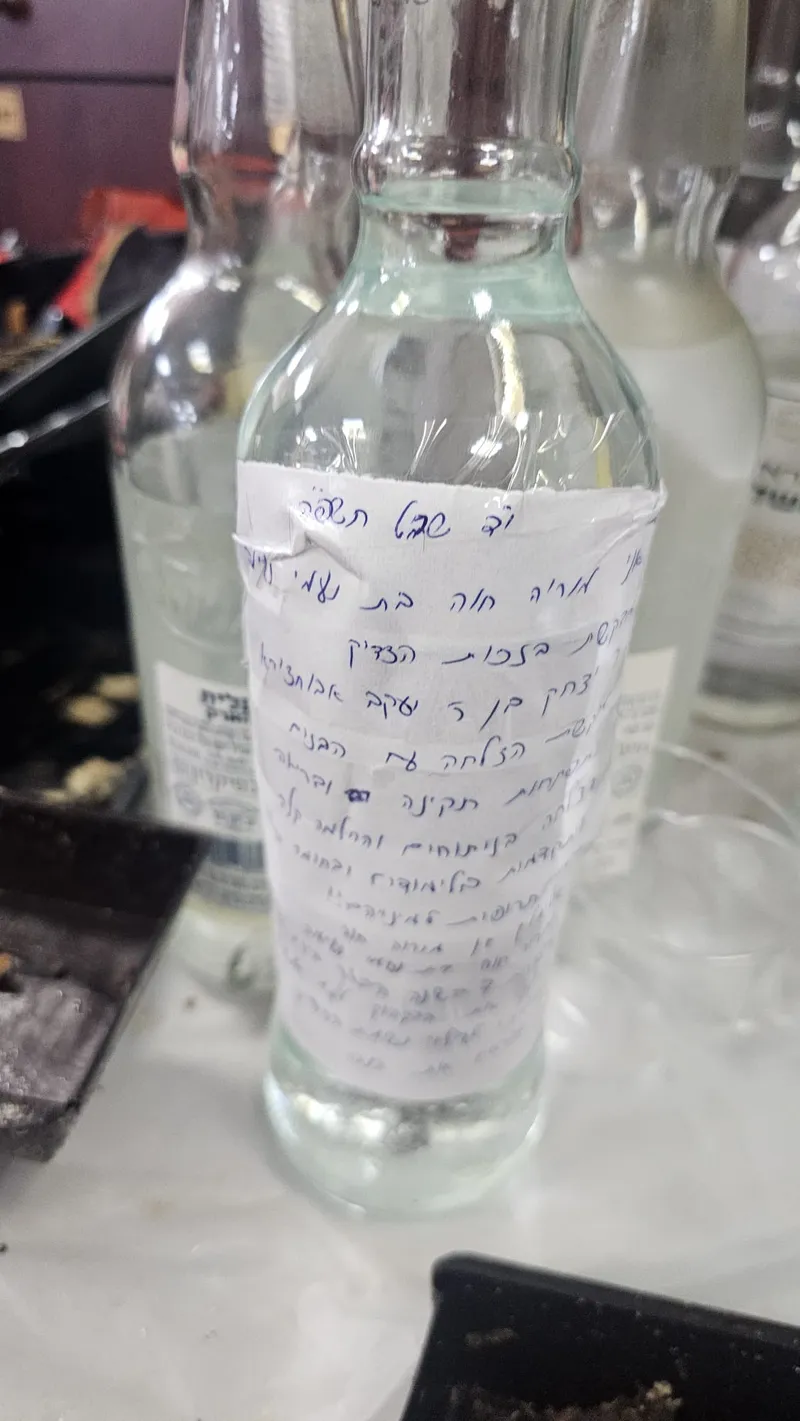 בשטיבלאך 'קארו' השטיבלאך החסידי המרכזי בביתר עילית, נפתחו הבוקר עשרות בקבוקי עראק עליהם נכתבו בקשות לישועה, כשחסידים רבים קוראים את הבקשות ומספרים על הישועות.